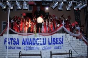 Fatsa Anadolu Lisesi, 11. kez mezun vermenin sevincini okul bahçesinde düzenlediği mezuniyet şöleniyle kutladı. Mezuniyet şölenine Kaymakam Mustafa Selman Yurdaer, Belediye Başkanı Hüseyin Anlayan, İlçe Milli Eğitim Müdürü Yusuf Çaya, Garnizon Komutanı Volkan Öznacar, okul müdürleri ve çok sayıda öğrenci velisi katıldı.Fatsa Anadolu Lisesi, 11. kez mezun vermenin sevincini okul bahçesinde düzenlediği mezuniyet şöleniyle kutladı. Mezuniyet şölenine Kaymakam Mustafa Selman Yurdaer, Belediye Başkanı Hüseyin Anlayan, İlçe Milli Eğitim Müdürü Yusuf Çaya, Garnizon Komutanı Volkan Öznacar, okul müdürleri ve çok sayıda öğrenci velisi katıldı.
