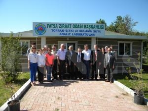 Fatsa Ziraat Odası Başkanlığı bünyesinde ilçemiz Evkaf Mahallesi, İlçe tarım müdürlüğü ile Orman İşletme Şefliği binasının arasına kurulan Toprak – Bitki ve Sulama Suyu Analiz Laboratuarı’nı, Fatsa Kaymakamı Bekir Atmaca, İl Tarım Müdürü Musa Sağlam, Jandarma Komutanı Halit Gülten, İlçe Emniyet Müdürü İbrahim Cibellik ve İl Tarım Müdürlüğü’nde çalışan daire amirleri ziyaret ederek incelemelerde bulundular. Fatsa Ziraat Odası Başkanı Mehmet Özgen ve görevli ziraat mühendisleri laboratuar binası ve laboratuar içinde bulunan donanımla ilgili bilgiler verdiler.