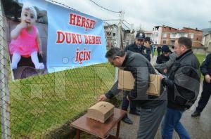 Taraftarlar, stadın giriş kapısında açtıkları stantla Duru bebek için yardım topladılar.Taraftarlar, stadın giriş kapısında açtıkları stantla Duru bebek için yardım topladılar. Bağışlarını Duru bebeğin sağlığına biran önce kavuşması için yaptıklarını belirten Fatsa Belediyespor taraftarı Aşkın Tokatlı, “Duru Bebek için tüm Fatsa el ele oldu ve bizler de katkıda bulunmak için bir bağış kutusu yaptırarak yardım topladık. Maça gelen herkes boş geçmedi ve bizlere destek verdiler. Fatsalı taraftarlarımıza verdikleri desteklerden dolayı çok teşekkür ediyorum. Toplanılan parayı kulüp müdürümüz eşliğinde banka hesaplarına yatıracağız” dedi.