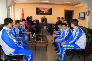 Fatsa Atatürk Mesleki ve Teknik Anadolu Lisesinin başarılı sporcuları, Fatsa İlçe Milli Eğitim Müdürü Ekrem Cinoğlu başkanlığında Fatsa Kaymakamı Mehmet Yapıcı’yı makamında ziyaret ettiler.