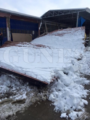 İlçemiz büyük sanayi sitesinde bulunan bir işyerinin çatısı, kar kütlelerinin ağırlığına dayanamayarak çöktü.Etkili olan kar yağışı nedeniyle sanayi sitesinde bulunan bir işyerinin çatısı, üstünde biriken kar ağırlığını taşıyamayarak çöktü.