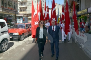 Yürüyüşte öğrenciler hep birlikte Onuncu Yıl Marşı ve İzmir Marşı’nı birlikte söyleyerek bayrak salladılar. Vatandaşlar da ürüyüş yapan gençlere alkışlarla eşlik ettiler. Yürüyüş 15 Temmuz Özgürlük Meydanı’nda sona erdi ve tören burada devam etti. Günün anlam ve önemini belirten konuşmayı Gençlik Hizmetleri ve Spor İlçe Müdürü Halil Bekyürek gerçekleştirdi.